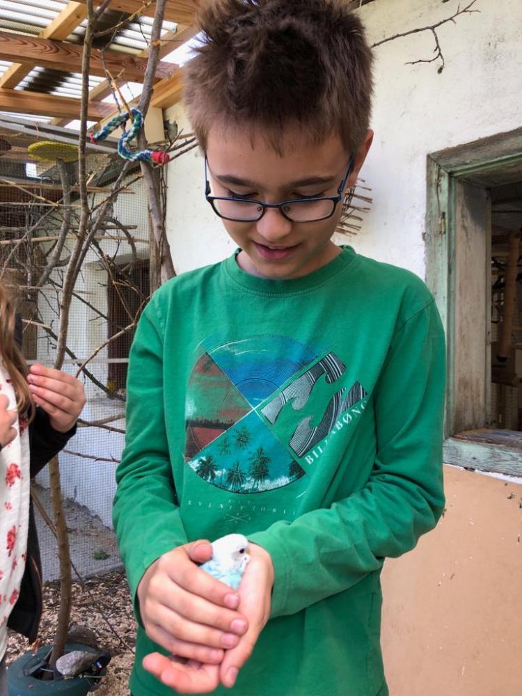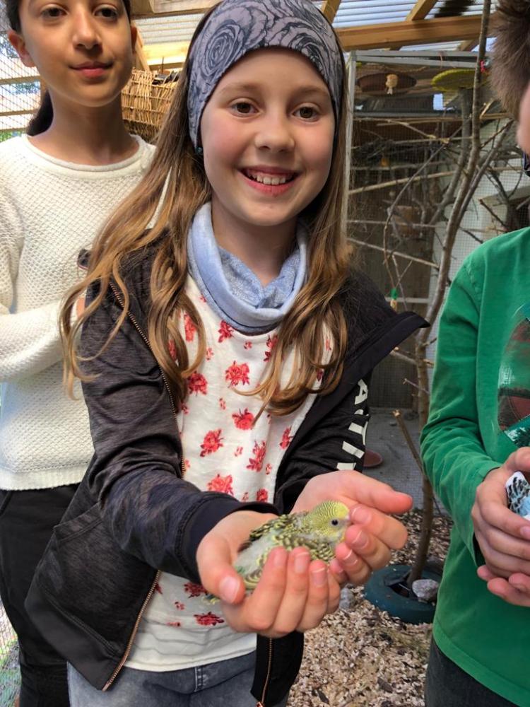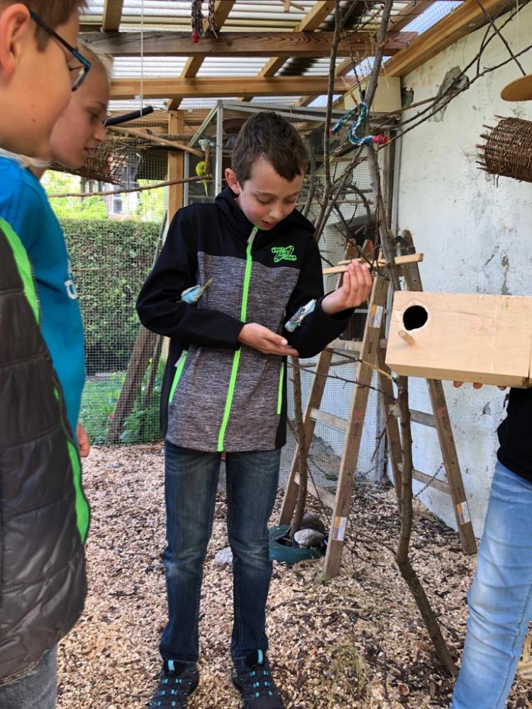 Am Donnerstag, den 09.05.2019, wurden die Schülerinnen und Schüler der 1b zu ihrem Klassenkameraden Moritz Koch in die Vielfalt der Vogelzucht eingeweiht. Mit über 70 Vögel ist Moritz ein begeisterter Vogelzüchter. Er plante ein umfangreiches Programm, wo die Schülerinnen und Schüler sogar Jungvögel halten durften und Vogelpatenschaften übernehmen konnten.