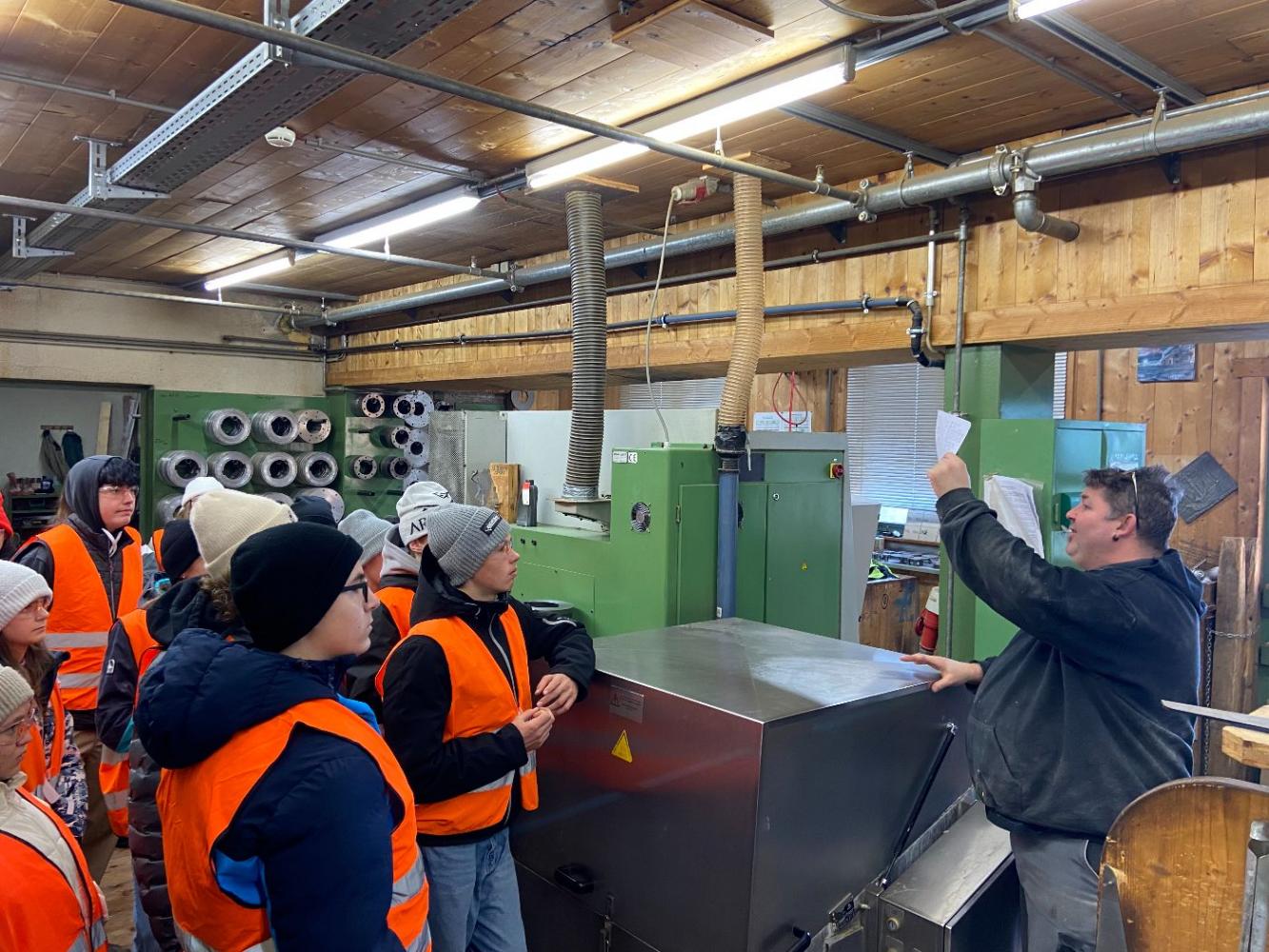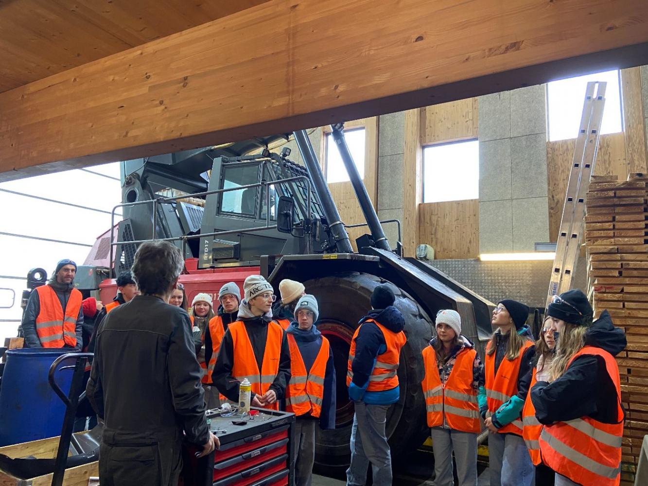 Im Rahmen des folgenden Rundgangs durch das Werk durften die SchülerInnen einen Blick in sämtliche Bereiche werfen. Dabei beobachteten sie hautnah, wie Hightech-Anlagen und Fachwissen zusammenwirken, um nachhaltige und qualitativ hochwertige Holzprodukte herzustellen. Die Führung bot nicht nur interessante Einblicke, sondern auch ein besseres Verständnis für die Bedeutung des Werkstoffs Holz in unserer Region.